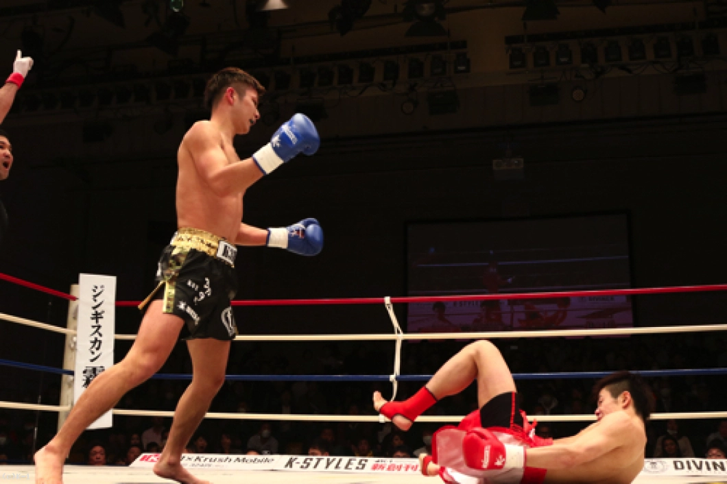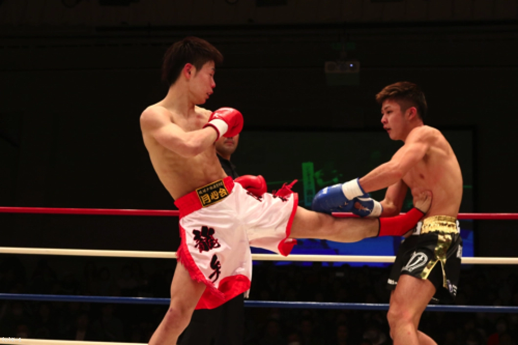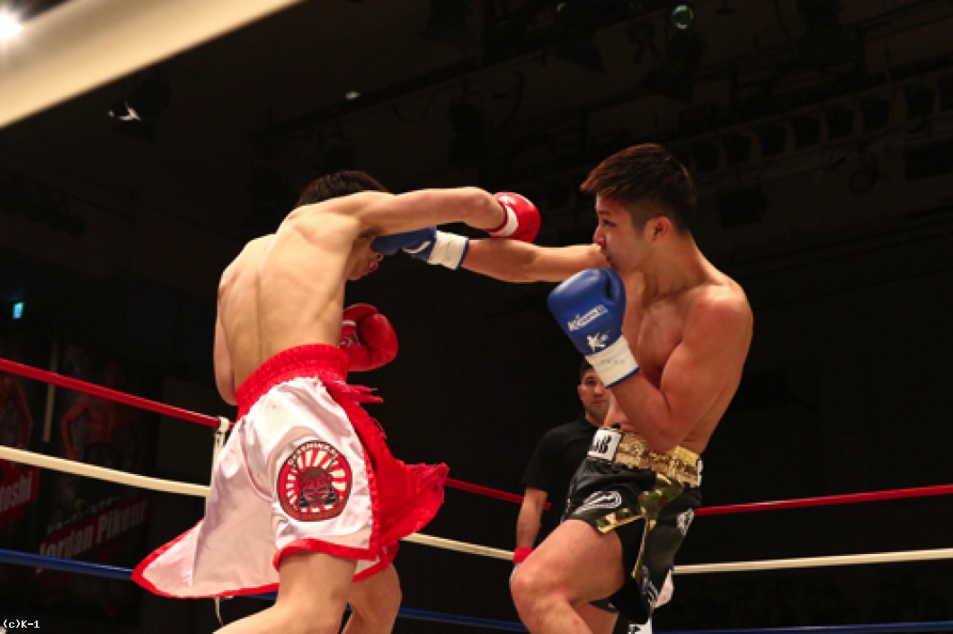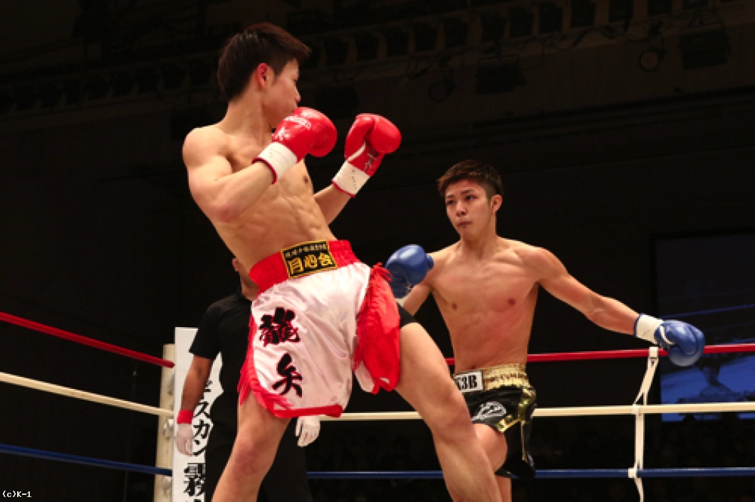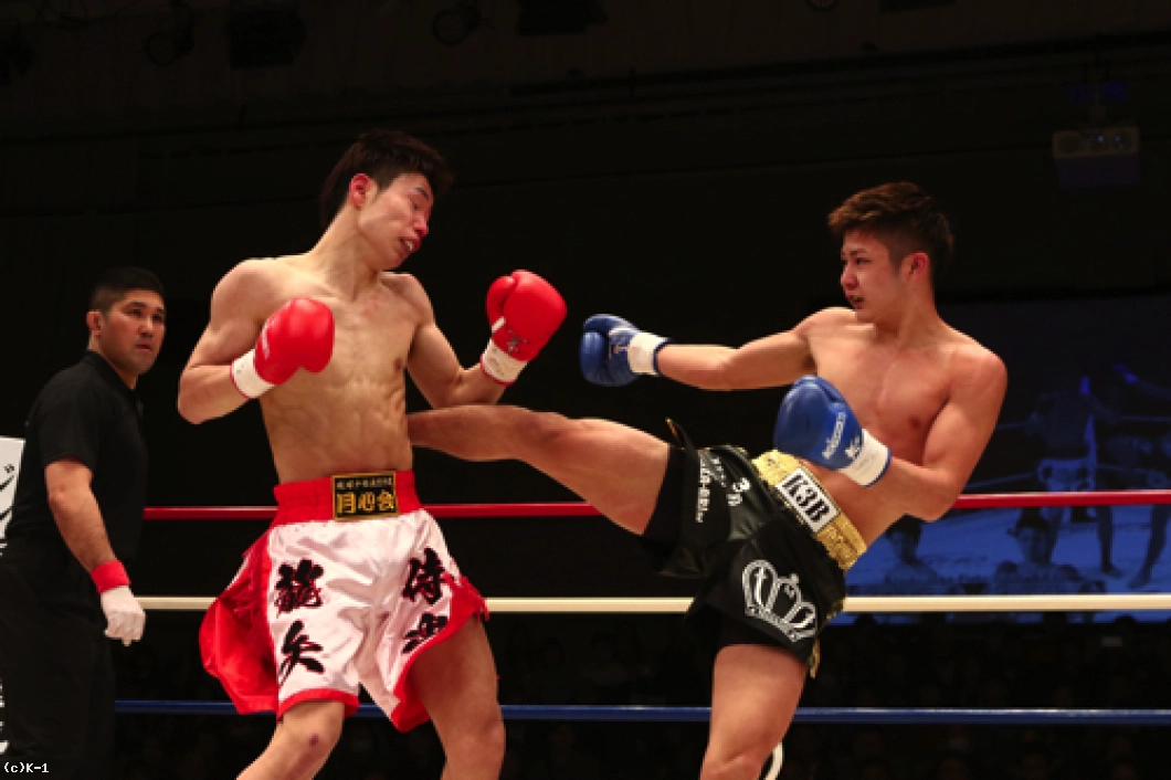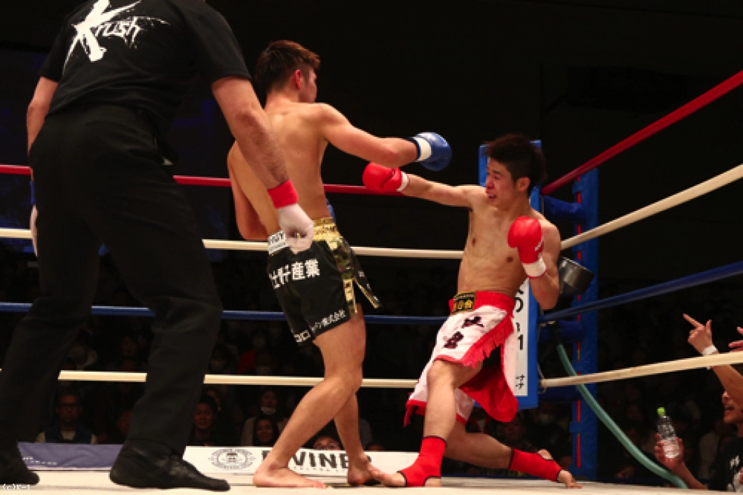 1R、椿原は前蹴りを飛ばして玖村の接近をけん制。しかし玖村が近づいて左ボディを入れると、椿原も強気に同じ技をやり返す。その後も前蹴りを放っていた椿原だが玖村は打ち合いに呼び込み、まず右ストレートを相打ちのタイミングで放ち、続いて椿原がフォローした左フックをかわすと直後に右クロスを打ち込みダウンを奪取。立ち上がった椿原だがやや焦りが感じられ、前蹴りが無くなっている。玖村がプレッシャーを掛けてロープに詰めて初回を終える。