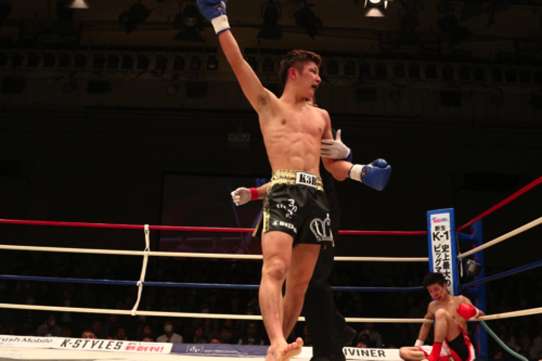 「(試合の感想は?)左ジャブとかを練習してきてたので、それを出せたのがよかったですけど、試合の組み立てとかが全然できなかったのでまだまだです。(対戦相手の印象は?)Krushのチャンピオン二人(軍司泰斗・西京春馬)に勝ってたので、もっと強いかなと思ってたんですけど、全然って感じでした。(今後の目標は?)Krush-55kgチャンピオンの寺戸伸近選手、ぜひ次やりましょう」