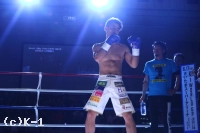 3R、圧力を増したかの伊澤はフックから上段への後ろ回し蹴り、ハイキックと神戸を襲う。神戸も押し返そうとするのだが、伊澤が押し勝つ形で、右ストレート、右ボディフック、左ローと神戸を攻める。コーナー・ロープ際から出んとする神戸だが、伊澤はボディに左右ヒザを集めて押し戻す。神戸が後ろ回し蹴りを決めれば、伊澤もすぐ跳びヒザを返して試合を終える。判定は30-29、30-28、30-27の3-0で伊澤。再起戦で勝利し26勝目を飾った。