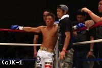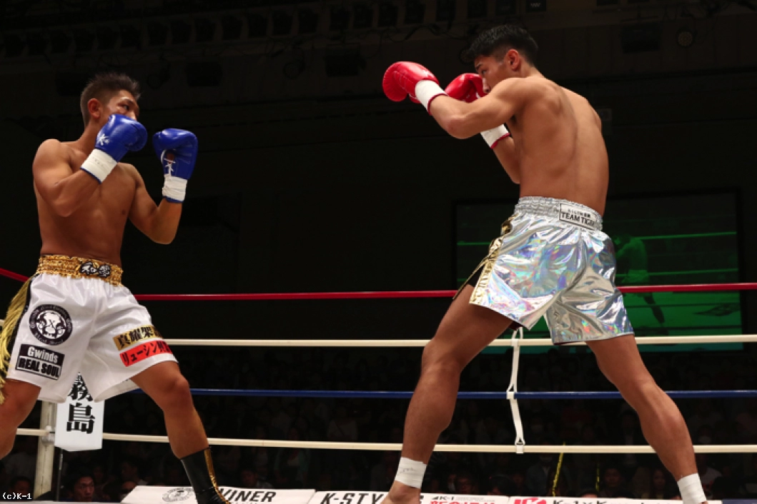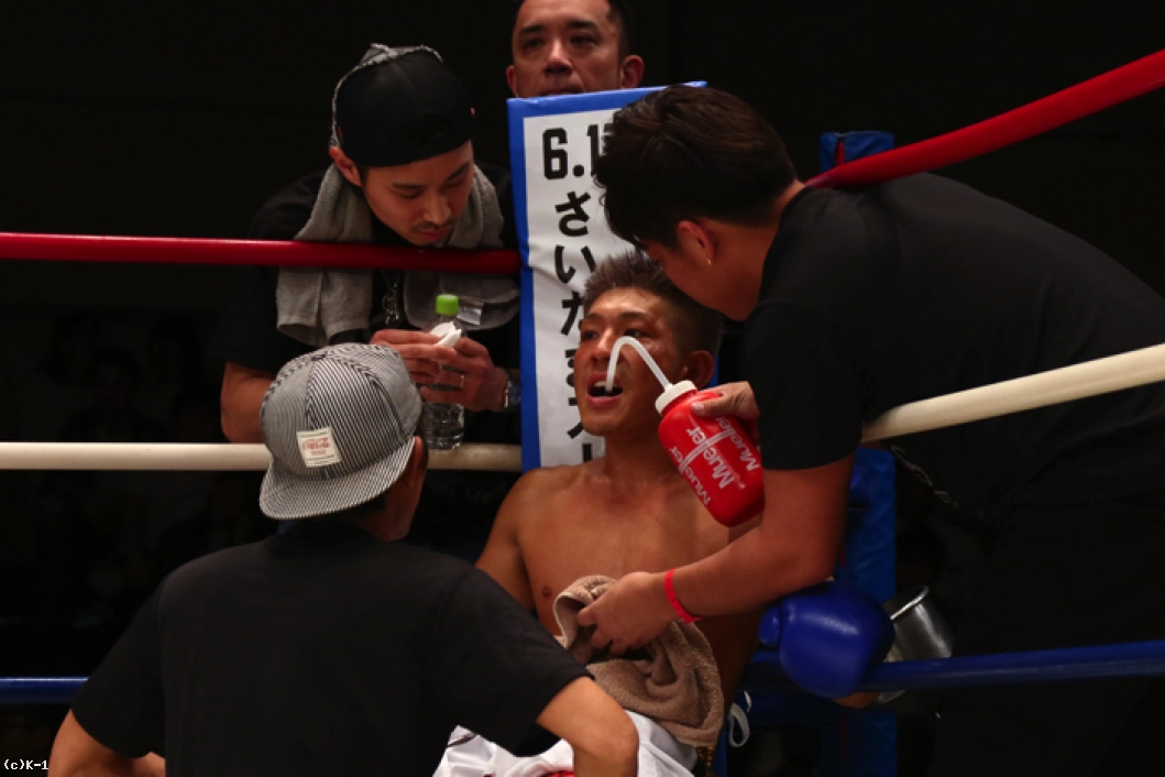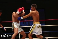 3R、伊藤は蹴りを主体にしながらも前に出て、左ジャブ、左フックで和夢をとらえる。ガードから前蹴りを放っていく伊藤。和夢が放ってくる左フックと右ストレートはガードで弾いて当てさせず、和夢をロープ・コーナーに追い詰める。跳びヒザ、ハイキックと伊藤は攻め、和夢をシャットアウトして終える。判定は30-27、30-27、30-26の3-0で伊藤。堅実な試合運びで勝利した。
