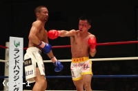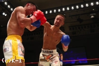 強打の島野に呼応するように郷州も右クロスを振るって当て島野を下がらせる。だが、島野も右クロスを相打ちにさせて反撃。続けて左右フックをボディに集めて郷州を削る。しかし郷州は右クロスで前進。島野はこれを押し戻して左ボディフックを再びめり込ませる。