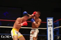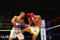 2R、顔の左側面から出血が見られる郷州。島野は襲い来る郷州のボディを叩いていくが、郷州は右クロス、右ストレート、右フックと右のパンチの軌道を変えて島野を襲う。しかし持ちこたえた島野は反撃に転じてボディフック。だが郷州は再び攻勢に入り、右ストレート、ボディへの跳びヒザ。島野のボディフックに郷州はローで応戦する。ラウンド最後に島野は左右の拳を思い切り振るって郷州を倒すが、ここはラウンド終了のゴングが先に鳴り、ダウンとは見なされない。