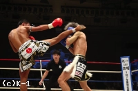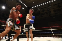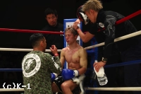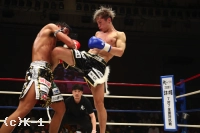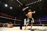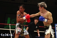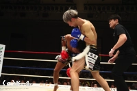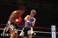 1R、金子は右ミドルで先制。右・左とフックを打ち込み、軍司に跳びヒザも仕掛ける。軍司が左ローを入れると、金子は顔からボディにフックを走らせる。金子が右クロスを当てれば軍司は右ショートストレートを当て返し、これに金子は尻もちをつくが、これはスリップでダウンとならず。