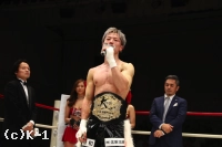 「(試合を振り返って?)盛り上がったかなって思います。(対戦相手の印象は?)強かったですけど、正直もうちょい強いかなと思ったのはありますね。(今後の目標は?)しっかり前チャンピオンよりいいベルトにして、K-1に参戦したいなって思います」