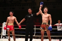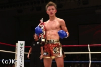 「(試合を振り返って?)ひさしぶりの試合で、緊張して疲れちゃいました。(初のKrushのリングについては?)満員のリングで気持ちよかったです。お客さんも凄く盛り上がってくれたので。この舞台に上がれてよかったと改めて思います。(対戦相手の印象は?)1Rでジャブ当たって、鼻が折れてると思うんですけど、それでも前に出てくるので気持ちが強いなと思いました。(今後の目標は?)僕はちょっとしょっぱい試合しちゃったんですけど、次は弟の試合もあるんで。これからも盛り上げていきたいと思うのでがんばります」