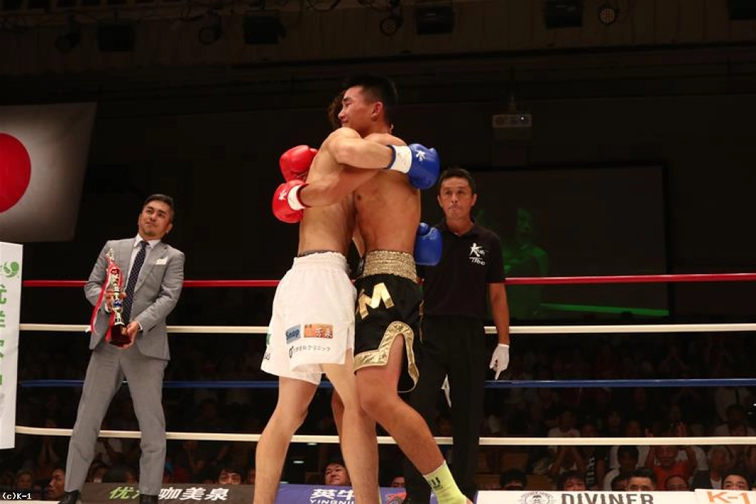 「(試合を振り返って?)やばかったです、マジで。ジャオ選手、強すぎです!(対戦相手の印象は?)チャンピオンに近い存在ですけど、KO勝利できたんで、僕のほうが強かったてことで。(今後の目標は?)」やんなきゃいけない相手がいると思うんで。そこで勝ってタイトルマッチを僕がやりたいと思います」