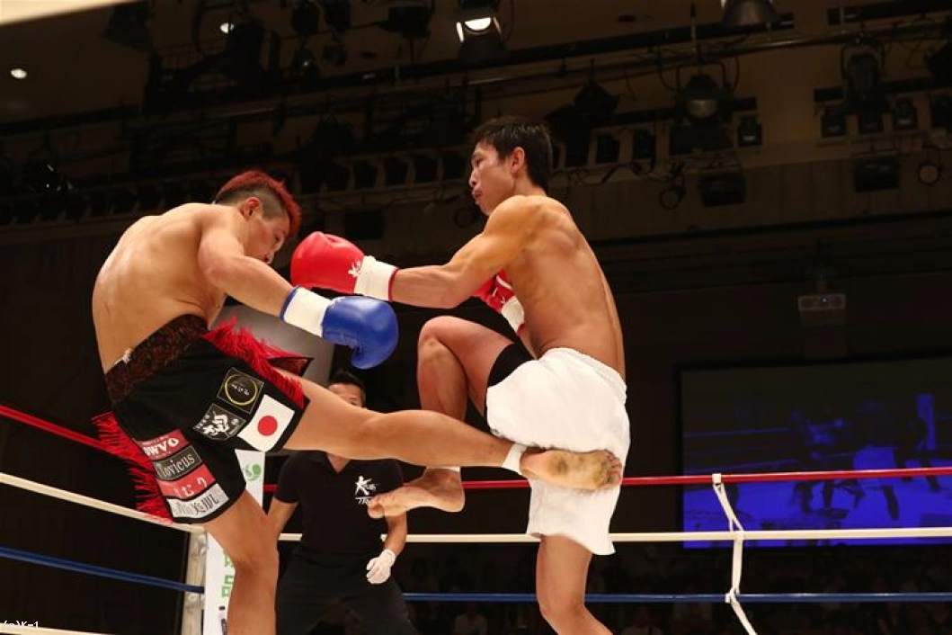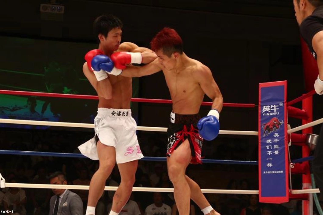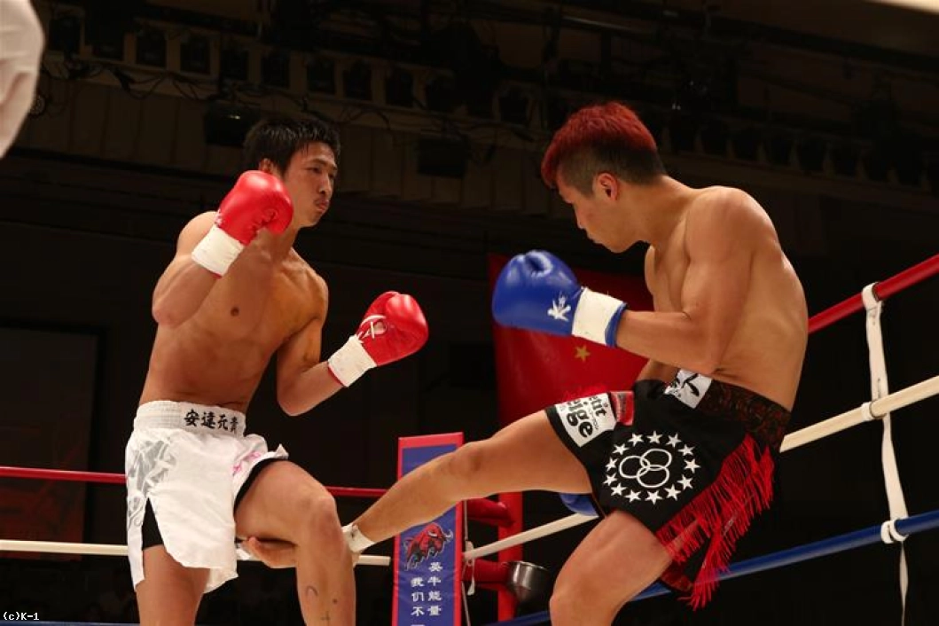 2R、三輪がローを当てるが、安達はこれに跳びヒザで対抗。三輪はローでの攻めを変えず、これに安達はやや体勢が崩れる。ローのダメージで踏み込みが鈍り、安達は手数が落ちる。三輪はさらにローの本数を増やすが、安達は逆にボディ打ちも交え、パンチを上下左右と走らせる。