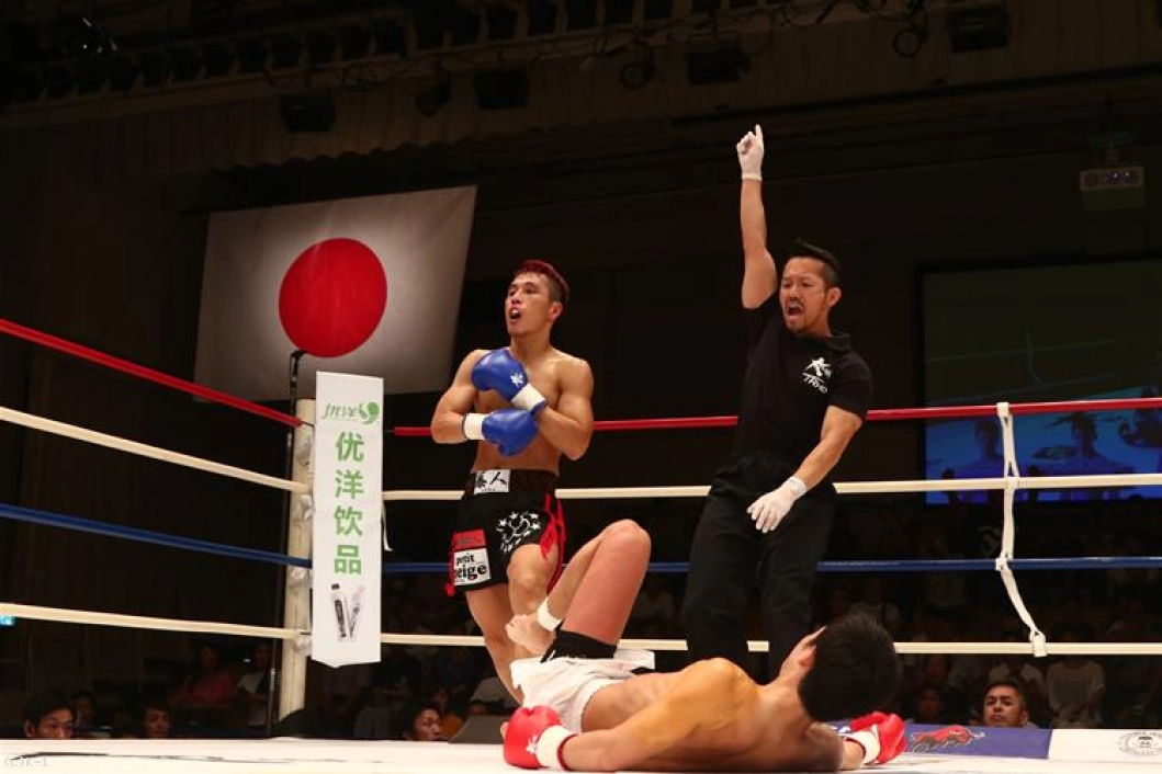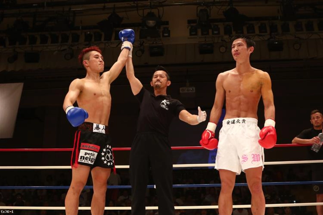 判定は28-28、30-28、29-28の2-0で三輪。ローを効かせ、3Rにバックブローでダウンを奪って勝利した。