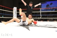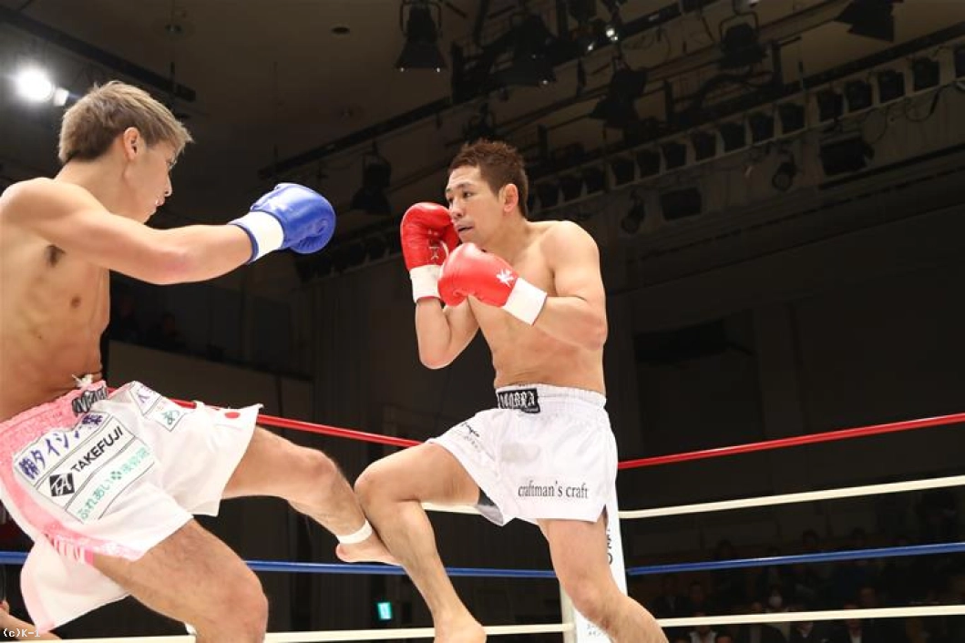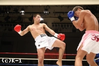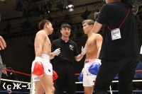 2R、里見は左ハイ、左ローと左の蹴りを飛ばす。山本も左ローを返して入れる。山本は里見の蹴りとパンチをブロックしながら前に出る。里見は左ストレートを伸ばし山本はこれをブロックするが、足がもつれる。里見は続いて山本が踏み込んで右フックを振るってきたところを一瞬速く左ストレートで打ち抜く。山本はこれにダウンを喫し立ち上がることができず。里見が記念大会のメインを飾った。