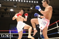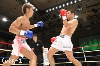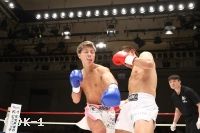 1R、ともにサウスポーで互いに様子見のミドルを飛ばす。ロー・前蹴りから前に出んとする山本だが、里見はそこにミドルを放ってストップする。山本のわき腹をとらえる里見の右ミドル。そこから左フックを強振していく里見だが、山本はよく見えておりダッキングでかわす。だが里見も山本のパンチがよく見えておりクリーンヒットを許さない。