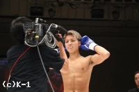 「(試合を振り返って?)初めてのメインで、相手も山本真弘選手ということで、プレッシャーとかいろいろあったんですけど、得意の左でKOできたのでよかったと思います。(対戦相手の印象は?)スピードが早かったのか、反応がよくて。蹴りで攻撃する予定がかわされたりして、力んじゃって。やりづらいのがありましたね。(今後の目標は?)自分は二十歳なんですけど、今回はKrush10周年ということで。とても光栄な大会を最後KOで締めくくれたんですけど、全然満足はしてなくて。これからKrushはどんどん盛り上がっていくと思うので。その中で若い自分が一番盛り上げられたらいいと思ってます。