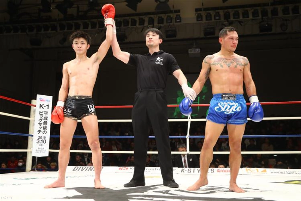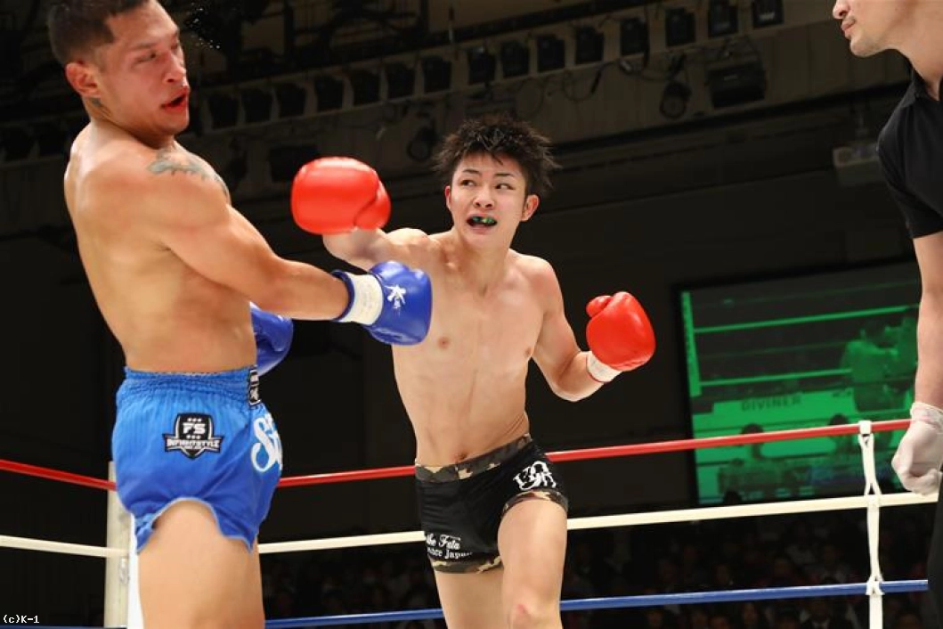 「(試合を振り返って?)もっと圧倒的に勝とうと思ったんですけど、さすが世界のトップファイターですね、強かったです。(対戦相手の印象は?)自分の攻撃が当たれば倒れるなと思ってたんですけど。何発も効いたなって思ったんですけど、気持ちが強かったですね。(今後の目標は?)今年はKrush参戦して、5戦全部勝てたんで。来年はしっかり2月にベルトを取って、K-1に出て活躍していきたいと思います」