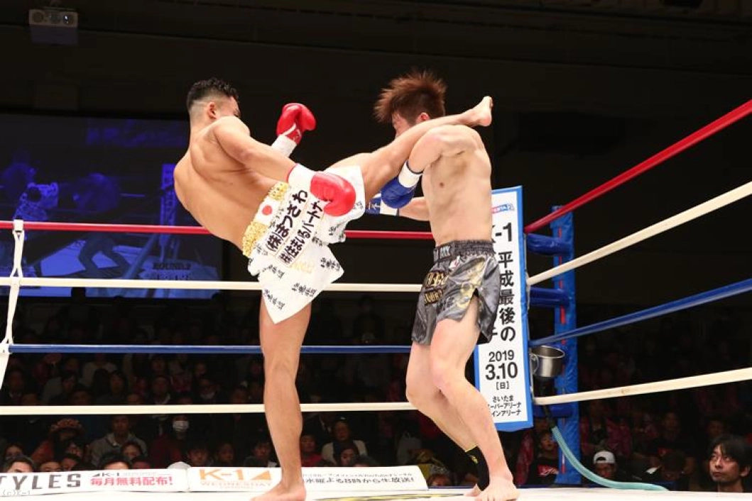 空道の大道塾仙南支部にも所属する平塚は道衣で入場。対する神保は今やトレードマークとなった特攻服でリングに上がる。1R、神保は開始から強気で前に出て右ストレートの上下打ち、右クロスと振るっていく。平塚はサウスポーに構え左ミドル、左インローと放ち神保をけん制する。かと思えばオーソドックスへ戻って神保にロングフックを振るっていく。