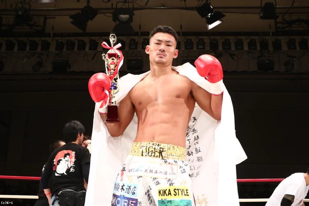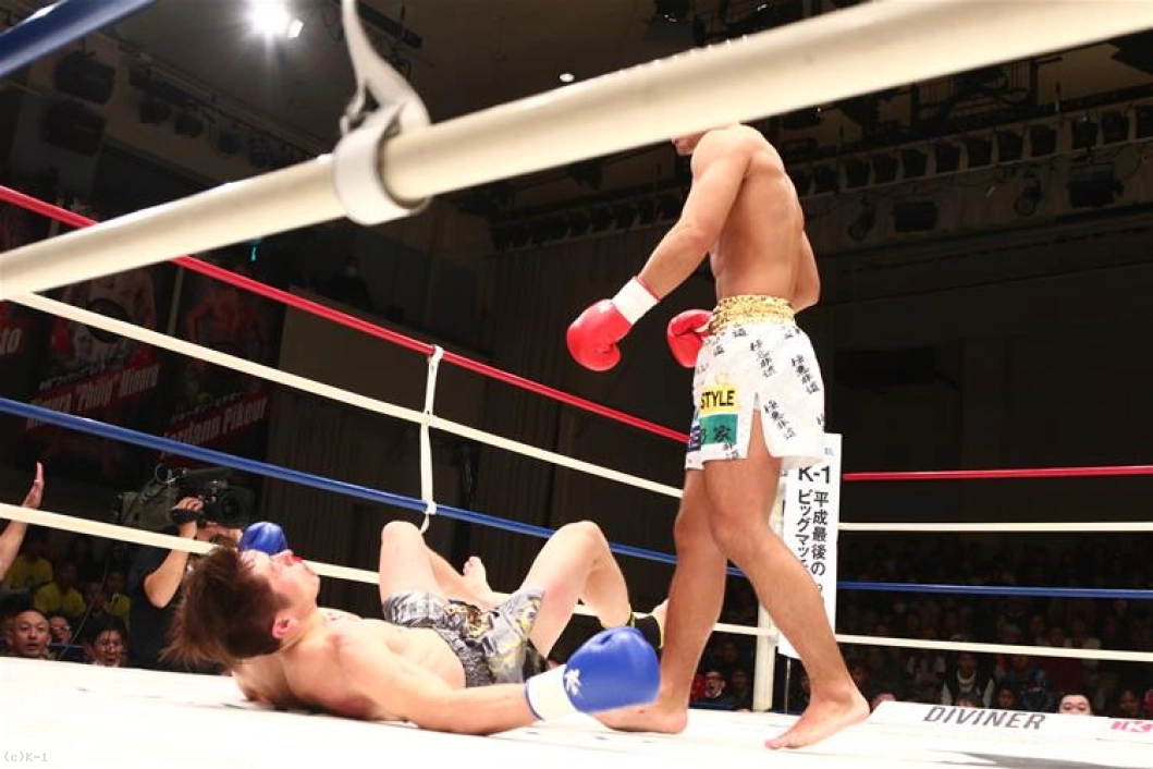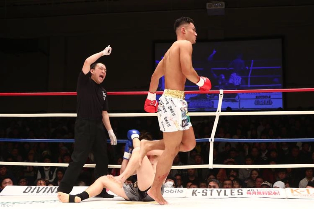 「(試合を振り返って?)納得はしてないです、1Rは固くなっちゃったんで。まあ倒せたのでいいかなと思ってます。(対戦相手の印象は?)倒せないとヤバい相手だなと思っていたので。1R、ナメちゃった部分があって固くなっちゃったんですけど。(今後の目標は?)世界制覇を目指します」