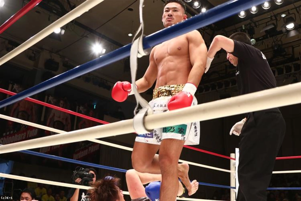 再開すると、神保は右ハイを打ち込んでダウンを奪取。残り時間は少なかったが、神保はパンチの連打で攻め込み、最後は押し倒されたかの平塚だったが、ダメージの蓄積もありレフェリーがストップした。試合後、神保はマイクで「そろそろベルト絡みたいんでよろしく!」と王座挑戦をアピールした。