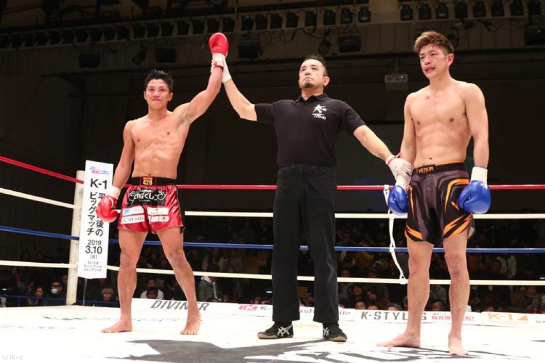 3R、左ミドルを放ちジャブを突く勇治だが、久保は前進の圧力を落とさず、ジャブからの右ローを当てていく。パンチはやや押し気味になっている久保だが右ローは勇治にダメージを与えている。鼻血の見られる久保だが、勇治の左右フックを被弾しても止まらない、下がらない。勇治を最後まで押し切り戦いを終える。判定は30-29(久保)、30-29(勇治)、30-29(久保)2-1で久保。接戦をものにして勝利した。
