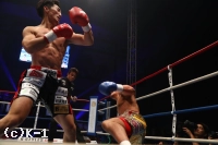 2R、山崎は離れた位置から1Rのようにジャブを突き、続いて掛け蹴り。これを当てさせない中澤はローを当て、右フック。山崎はしかし三日月蹴りを3連発。中澤は接近戦に持ち込みショートアッパーを突き上げるが山崎も同じ技を返し、掛け蹴りから右ストレートを打ち込み、2人が交錯して中澤がマットに倒れると、レフェリーはダウンを宣告する。立ち上がった中澤に山崎はバックブローなど大技を繰り出す。中澤が右ローを入れると山崎は左の掛け蹴りを返す。