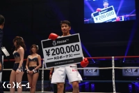2R、ブラックドラゴンはカカト落とし、右ミドルと前に出る。しかし功也当てさせず、ボディへのヒザから顔面への跳びヒザを見せ、このラウンドも再びダウンを奪う。立ち上がるドラゴンだがレフェリーは試合を止め、ここで功也のKO勝利となった。