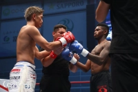 3R、城戸は右顔面前蹴り、左ミドルとマサロに決める。さらにボディへの前蹴りでマサロのバランスを崩すと城戸は左ミドルを打ち込み、マサロはやはりボディが効いているかの様子。マサロは苦しいかまた掴んでしまいイエローカード、減点1が宣せられてしまう。