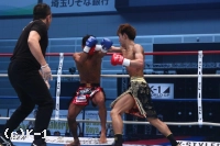 2R、横山はやはり軽やかなステップで久保の攻撃に空を切らせ、久保が打ってきたところに右フックをかぶせて当て、ダウンを奪う。横山は距離を作って久保に飛び込ませ、そこへ巧みにパンチを合わせる。左ストレート、右フックが冴え、跳びヒザを入れ、そこから連打をまとめて久保からスタンディングダウンを奪う。試合再開となるが、横山の連打に久保は手が出ず横向きになってしまい、ここでレフェリーが試合をストップした。