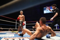 (対戦相手の印象は?)やっぱり身体がデカくて、向かい合ったときにプレッシャーを感じて。倒すことより、3R使って勝てればいいかなって考えていたので。ちょっと、うまく攻撃が入ったなって。あと、3R入ると体格差が出てきちゃうので、最初の方に倒せてよかったなというか。