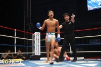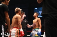 3R、小澤はミドル、後ろ回し蹴りを繋いで前に出る。しかし芦澤はリングを自在に回り、距離ができると顔面への前蹴りを飛ばす。セコンドの「遊べ」という声の通りに自由な動きを見せ、小澤に付け込ませない芦澤。小澤はボディストレートから活路を切り開かんとするが、ステップを止めない芦澤を捕まえらない。小澤は距離を詰めてヒザを突き上げるが、芦澤は左右のストレートで応戦する。判定は30-27、30-27、30-27の3-0で芦澤。因縁の対決で2度のダウンを奪い勝利した。