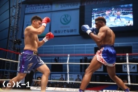 2R、グロースはジャブからローの基本に忠実な攻め。これに対し杉本はポーカーフェイスと冷静さを崩さない。前に出ていき、グロースのジャブ・前蹴り・左ボディを喰らいながらも前進する。距離を詰めたい杉本だったが、グロースのジャブに行く手を阻まれる。
