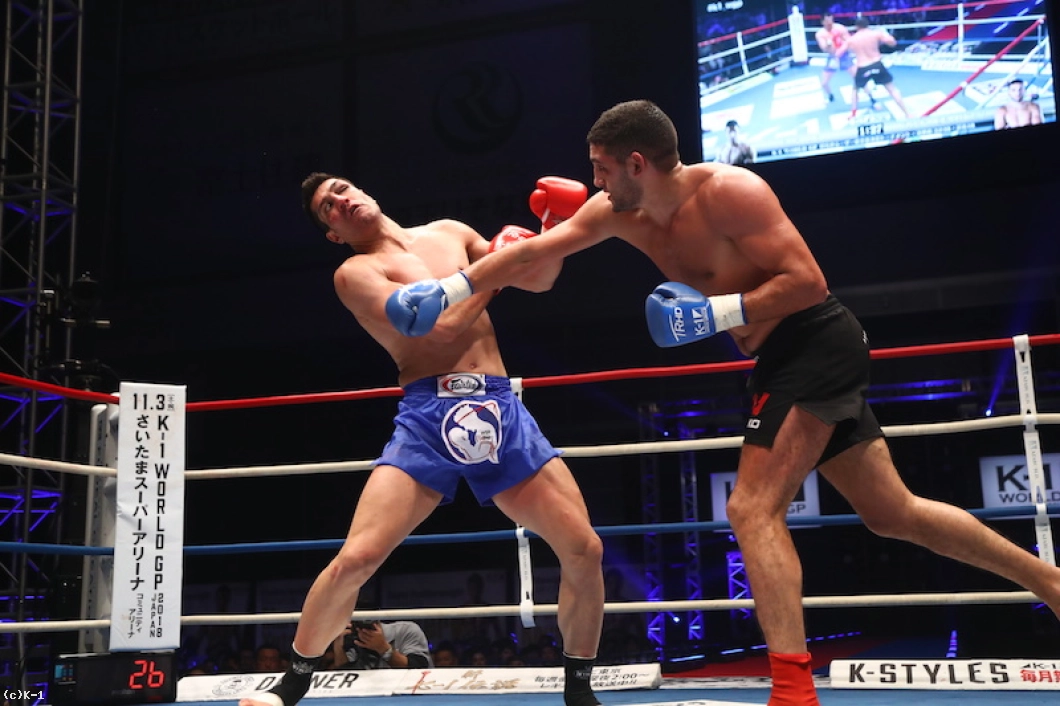 ここでバックブローを放つカリミアンだが今度は当たらない。バクーリが左ボディから右ストレートで迫るも、カリミアンはクリーンヒットを与えない。バクーリの右ストレートを浴びマウスピースを吐き出すカリミアンだがやはり倒れない。逆にカリミアンは二段前蹴りから左フックをバクーリに打ち込んで終える。