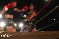「(試合を終えた感想は?)今はすごくホッとしています。記者会見でも絶対にKOすると言っていて、負けることはないなと思っていて。3Rまで手こずっちゃいましたけど、最後は倒せてよかったです。(対戦相手の印象は?)K-1アマチュアでもやったことがあって、その時はパンチで打ち合って、私がダウンを取って勝った形でした。今回も打ち合いで来ると思ったけど、前蹴りを二~三発初もらって失速しちゃった部分があって、そこは反省点ですね。