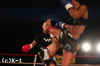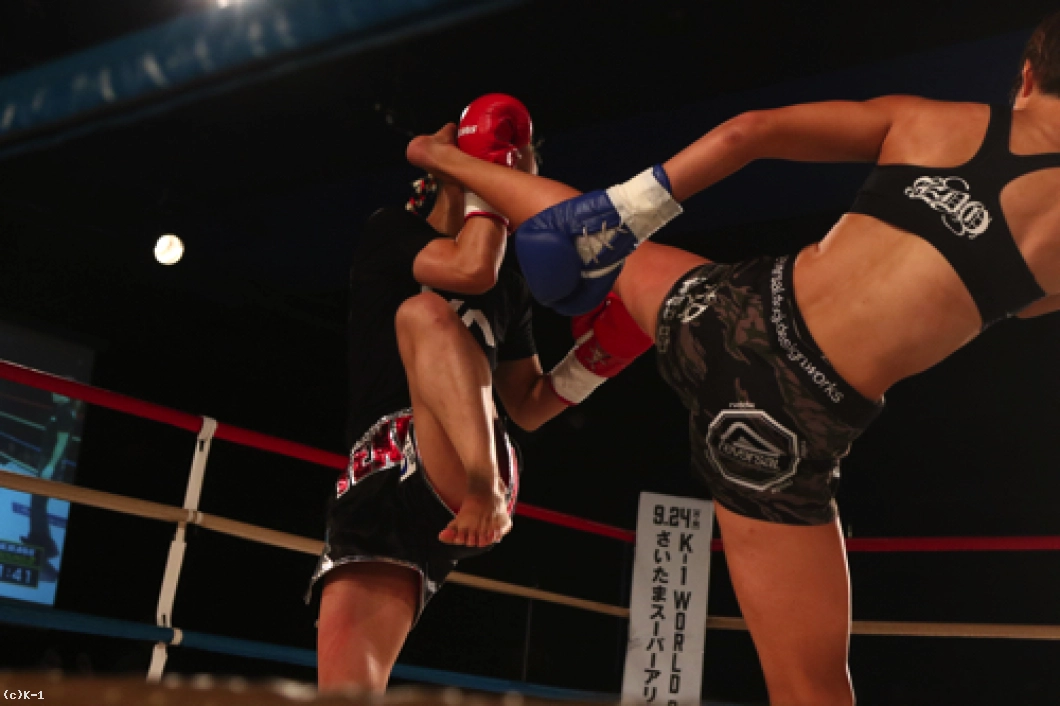 2R、ロー・ヒザ・ミドルと放つチャン・リーだが、テキサスはこれを意に介さず前に出て行く。テキサスは前に出ることでチャン・リーのバランスを崩し、蹴りの威力を殺す。さらにテキサスは左フック・右ストレートを振るって前進。チャン・リーはこれをホールディングで押さえてしまい、レフェリーから注意を受ける。