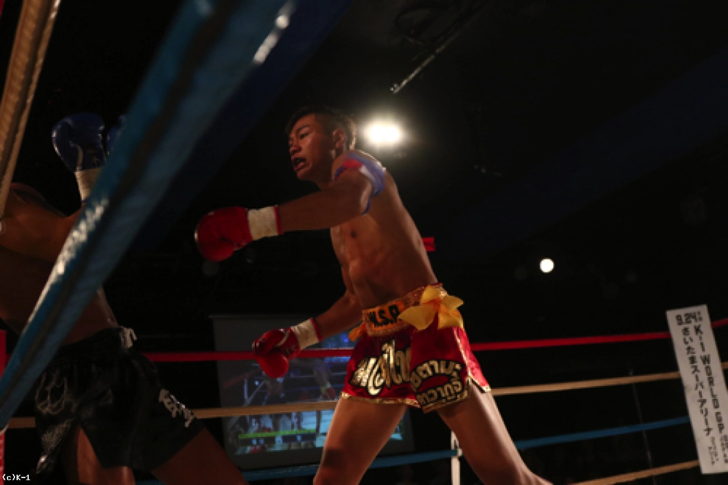 「(試合を終えた心境は?)今はホッとしています。前日計量でダメダメだったんで(※再計量でパス)、無事に勝てて良かったっです。(対戦相手の印象は?)左ハイキックで倒すと言っていたのに、全く左ハイキックを蹴ってこなくてびっくりしました。自分としては1Rはボクシングスタイルでいこうと思っていたんですけど、ちょっと緊張してああいう雑な試合になっちゃいました。