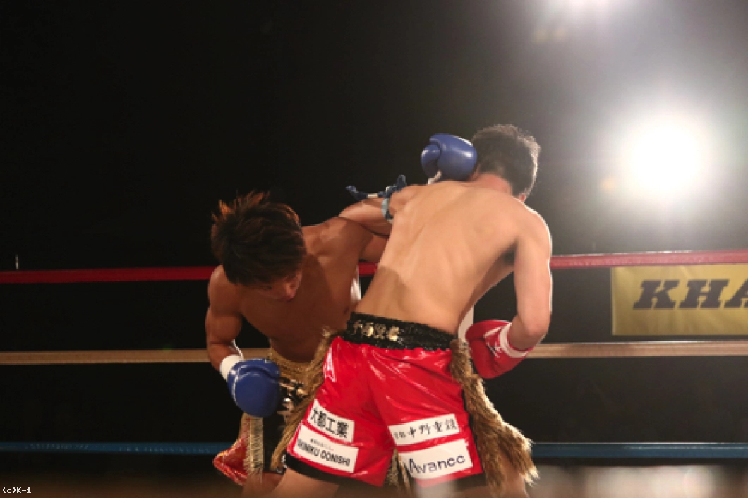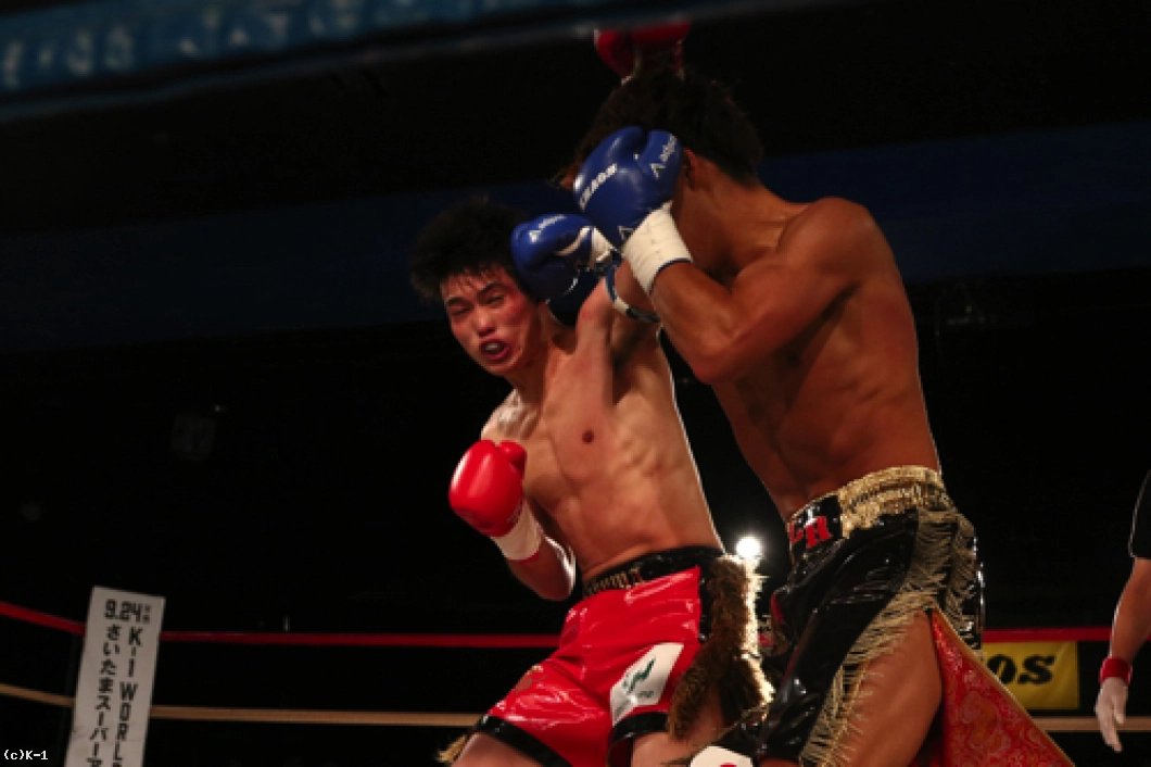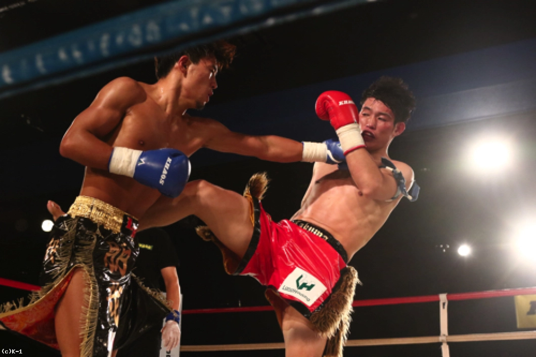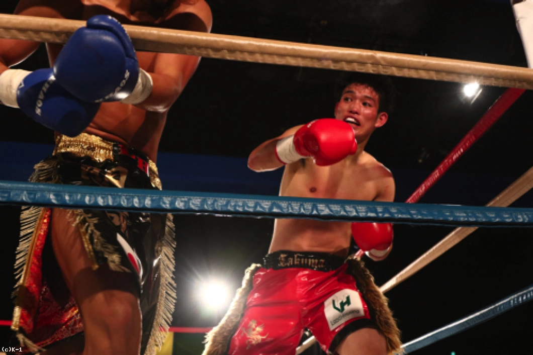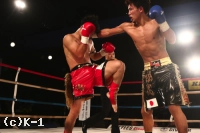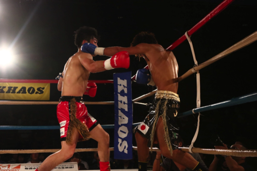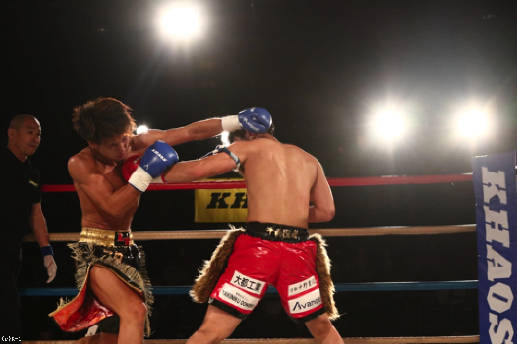 1R、開始から闘志を見せる川口は右ストレート、右フックの強打を打ち込む。横山はこれにヒザ蹴り・ミドルで応戦。試合は川口のパンチvs横山の蹴りという図式で進み、ラウンド終盤に横山が左フックのヒットからパンチで攻め込む。