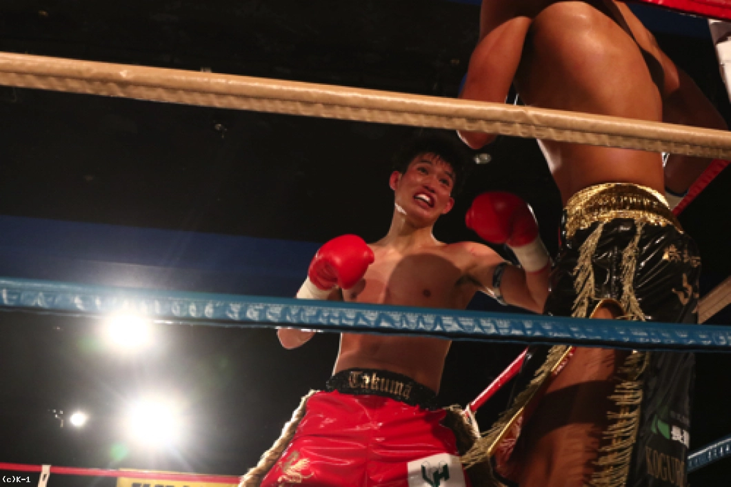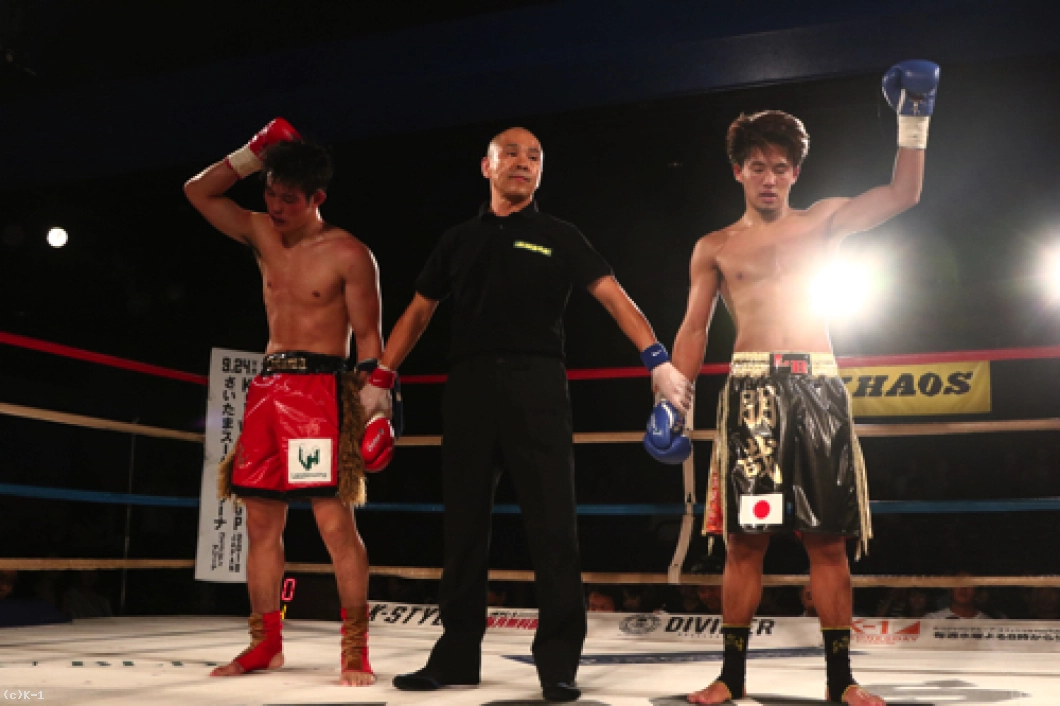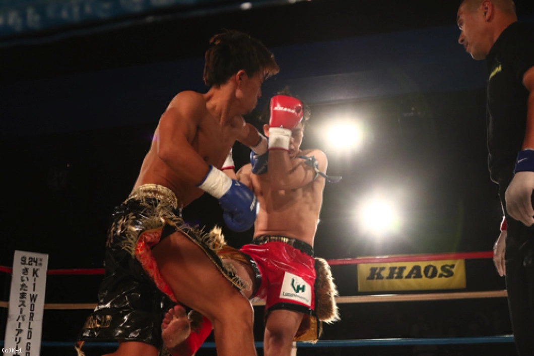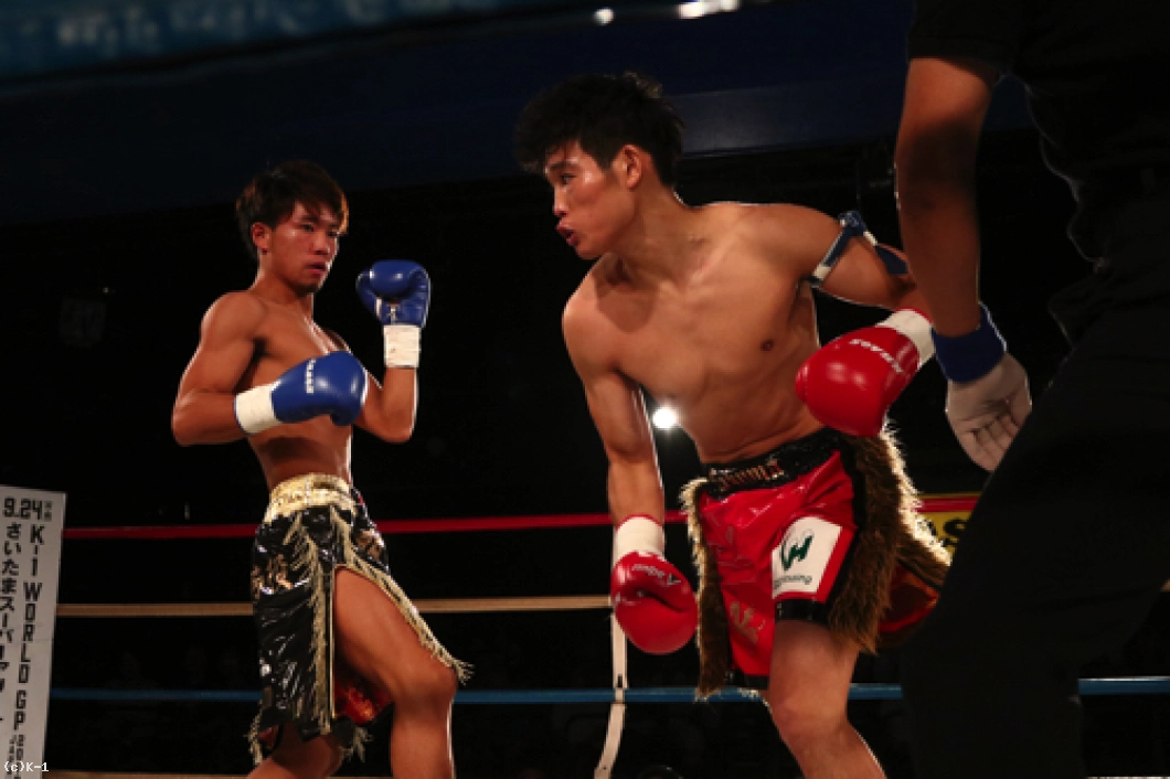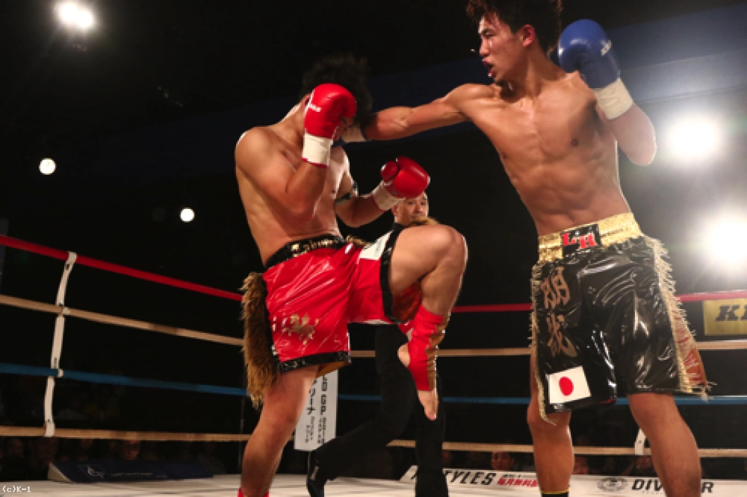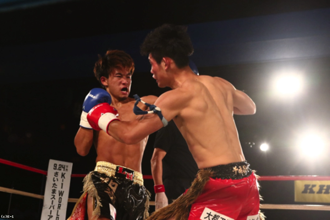 1R、開始から闘志を見せる川口は右ストレート、右フックの強打を打ち込む。横山はこれにヒザ蹴り・ミドルで応戦。試合は川口のパンチvs横山の蹴りという図式で進み、ラウンド終盤に横山が左フックのヒットからパンチで攻め込む。