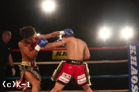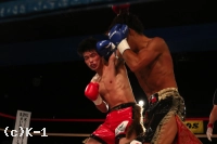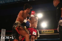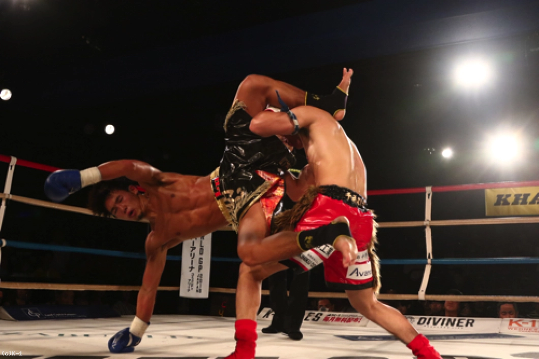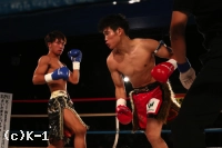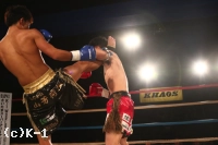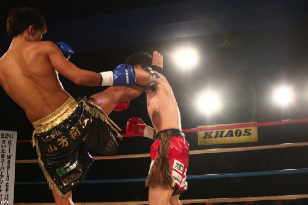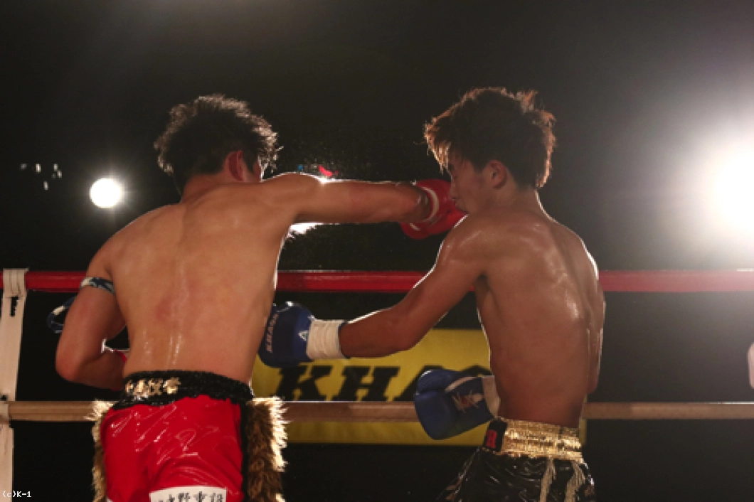 2R、体ごとぶつかるかのように前進する川口に対し、横山はサウスポーからのヒザ・跳びヒザを見せる。川口は戦法を変えず、パンチを中心にした攻めで前進。横山は正面衝突せず下がって距離を作り、ヒザ蹴り、カウンターの左ストレート、右フック、ミドルキックと多彩な攻めを見せる。