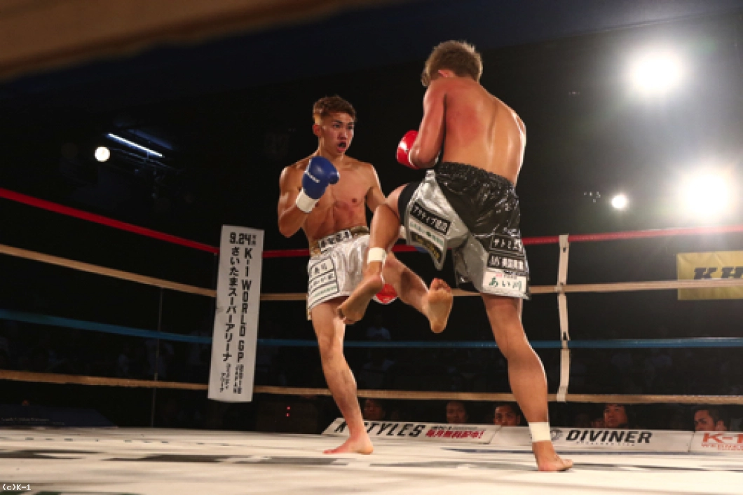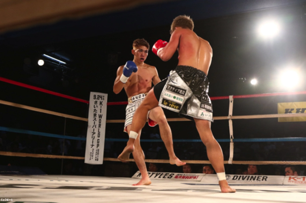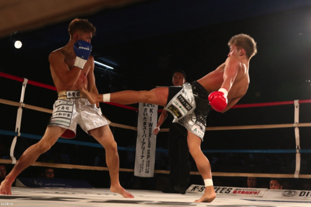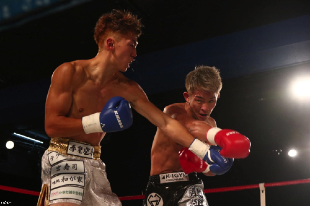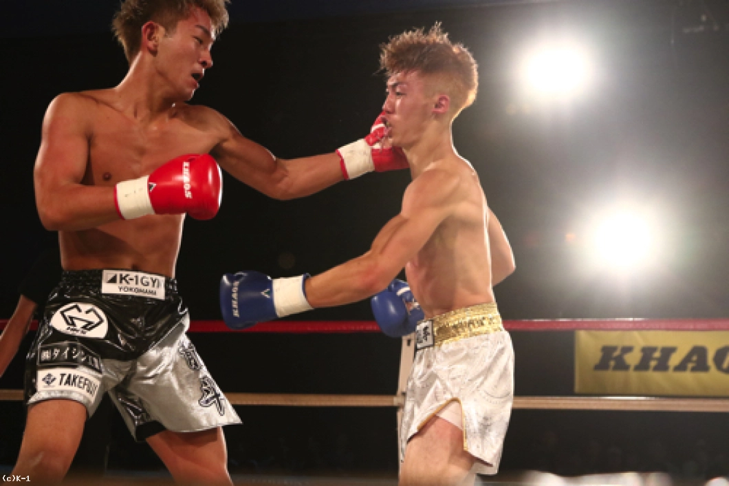 2R、変わらず内田は左右のミドル&ローと蹴り技中心で攻め、そこから踏み込んでのストレートを当てる。龍斗は内田が入ってきたところに右ストレートを狙うが、やや内田の蹴りに出足を止められている印象が残る。終盤、龍斗はヒザ蹴りから前に出て、左ボディ打ちと右ストレートで盛り返す。