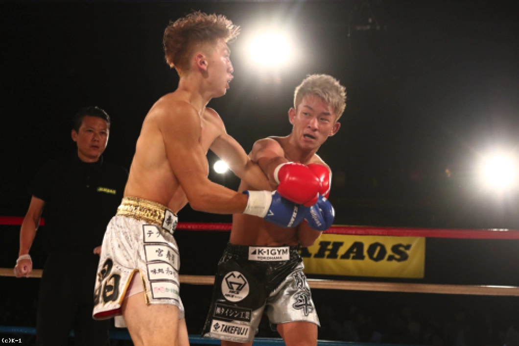3R、内田は下がって距離を作ると左ミドルを打ち込む。しかし龍斗も距離を潰して間合いを詰めると右ストレート・左フックを当て、さらにハイキックから右ストレートを連打する。内田もパンチを返すが、打ち合いでは龍斗が優勢。左フック・右ストレートで反撃する内田に対し、龍斗は勢いを落とさず、右ストレートを中心に押して終了。判定は29-28、29-28、29-28の3-0で龍斗。嬉しいKHAOS初勝利を上げた。