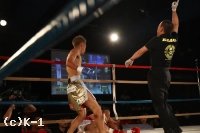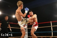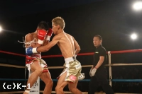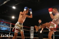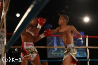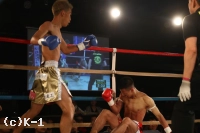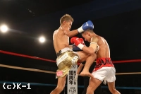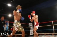 1R、お互いオーソドックスから璃明武が左ミドル、右ローとリズムよく放って先制。そこから左ボディを効かせ、さらに右ミドル、左フックの連打、ヒザ蹴りで光佑を攻め落としてダウンを取る。最後もパンチとヒザで光佑を再度攻め切り、初回KO勝ちを果たした。