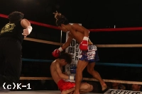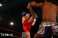 「今回がデビュー戦だったんですけど、緊張は全くなかったです。自分の得意技である足技をしっかり使えて、みんなにインパクトを与える・覚えてもらえる勝ち方ができたと思います。(対戦相手の印象は?)試合前の印象と変わらず、相手は思った通りでしたね。(回転蹴りは狙っていた?)あの技は普段の練習からやっている技なんですけど、昨日、夢であの技が出てきたんですよ。それで試合でやってみたらKOできました。自分が目指しているのはテコンドーとキックボクシングの融合です。自分は自由な性格で、普段からこういう髪型をしていてヒップホップが大好きなんですけど、格闘技でも自由で型にはまらないフリースタイルな戦い方で自由に戦いたいです。これからも一戦一戦、みんなに面白いと思ってもらえるKOをしていけたらいいなと思います。(試合のダメージは?)全然ないんでオファーがあったらいつでも試合OKです」