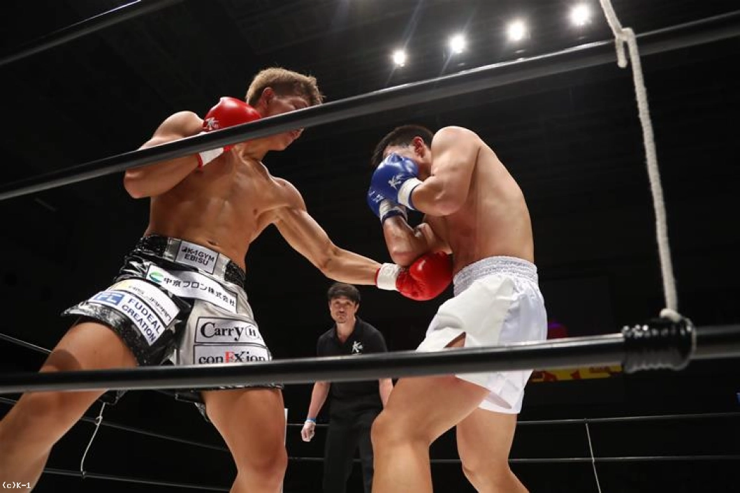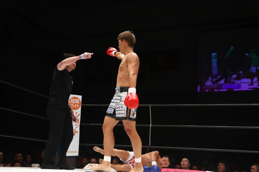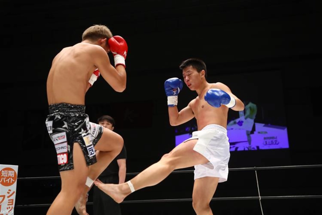 野杁はブロッキングでパンチを弾き、右ローを効かせる。ハオドンも右ストレートを当てていくが、野杁は終了間際に左フック、右アッパーから左ハイキックを繋ぎ、これでハオドンを横倒しにして豪快KO。コーナーに駆け上がって勝利をアピールした。