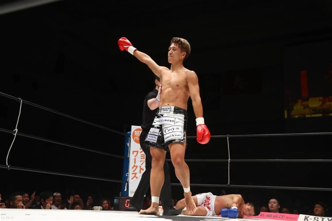 「試合後にセコンドの方とも話したんですけど、1Rはあのまま終わって(コーナーに)帰ってくるだろうと思っていたそうなんです。僕も同じでインターバルでセコンドの話を聞いて、2Rに倒しに行こうと思っていました。そしたら特に狙っていたわけではないのに、身体が勝手に反応してハイキックが出て。それがたまたま当たって決まりました。2年連続、名古屋Krushをハイキックで倒せたんでよかったかなと思います。(対戦相手の印象は?)もっと距離を取って戦ってくるかなと思ったんですけど、最初からガツガツ距離を詰めてきて。僕はそこでパワー負けしないという自信があったし、僕の土俵で戦ってくれたかなと思います。