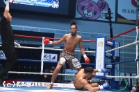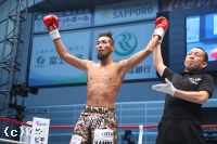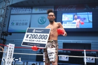 「(試合を終えての感想は?)ホントは2RKOで作戦立ててたんですけど、結果、1RでKOできたんで、ラッキーというか……自分の実力に今日でまたさらに自信がついたって感じです。(相手の印象は?)蹴り、ローキックとかミドルキックをもらったんですけど、見た目通り、なかなかパワーあったんで。僕はしっかり見えてたんですけど、あれを見えないで食らってたらヤバかったかなと。そういうのも込みで1Rで倒せたから、ホントに運がよかったかなと思います。