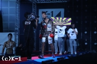 「(試合を終えての感想は?)正直勝つと思ってたんで、予想外な感じで、ビックリです。(相手の印象は?)具体的な感想は特になくて、思う間もなく1Rで終わってしまったんで、ただ単にビックリというだけですね。(今後の目標は?)K-1チャンピオンというのを目指していたんですが、今回こんな形で負けてしまって、まあでもこのまま変わらず、いろいろ考えながら、練習して前に進んで行こうと思います。(最後にひと言)松下選手にKOされてしまったんですけども、自分の持ってる技を何も出さないで終わってしまったんで、次の試合は自分の練習してきた技をしっかり出せるように頑張りたいと思います」