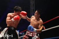 3R、ゲーオは足の負傷が意識にあるか、前に出てパンチから殺気のこもったヒザで襲う。しかし左右田も的確に対処して大きなダメージを負わない。左右田は接近戦で右ヒザをゲーオのボディに打ち込む。左右田はジャブのリードから右ストレートをヒット。接近戦でも変わらずゲーオのボディにヒザを蹴る。ゲーオは焦りがあるのか首相撲からのヒザを見舞ってしまい、レフェリーから注意を受ける。判定は30-29(ゲーオ)、30-30、30-30でドロー。延長戦に突入となる。