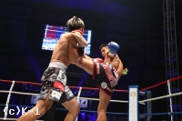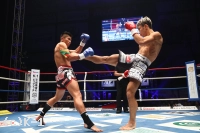 2R、ゲーオはこのラウンドも左ハイ、跳びヒザと猛攻から入る。そしてボディへのヒザを佐々木に打ち込む。前足の右前蹴りを飛ばし佐々木を近づかせないゲーオ。顔面前蹴りでも佐々木をとらえる。前蹴りに阻まれ、ゲーオに接近、そして攻めるタイミングを見い出せない。ゲーオはボディへのヒザ。右ストレートをあてるささきだが、ゲーオはスウェーでこの威力を殺す。