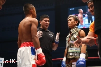 延長R、覇家斗が先手を取り、ヒザを中心に前へ出る。しかし江川は左フック、左アッパーで覇家斗をとらえる。倒れない覇家斗は再びジャブ、ボディフック、ヒザ蹴りで前進。目に腫れの見られる覇家斗だが、遮二無二江川を追う。江川は正面で打ち合わず、スルリスルリとした動きとステップで覇家斗を交わしながらフック・アッパーと自在にパンチを当てる。判定は3者10-9で江川。延長戦で差をつけて覇家斗を下した。