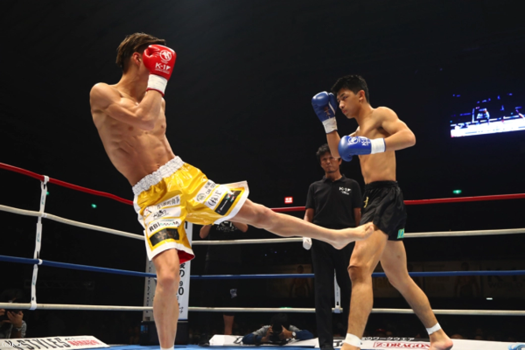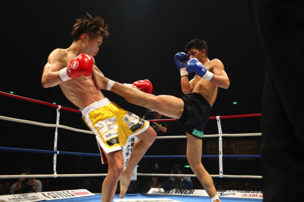 2R、フットワークと構えを左右に変えるスタイルから攻撃を繰り出す朝久に、安保は左ミドルで切り崩していかんとするが、朝久は安定感を見せペースを崩さない。朝久は安保のミドルを受けてもすぐにローを返し、ヒザで脚への攻撃も見せる。朝久は左右に構えを変え、フットワークと頭を振ってかわす動きで変幻自在。しかし安保にヒザでローブローを入れてしまい、レフェリーから注意を受ける。
