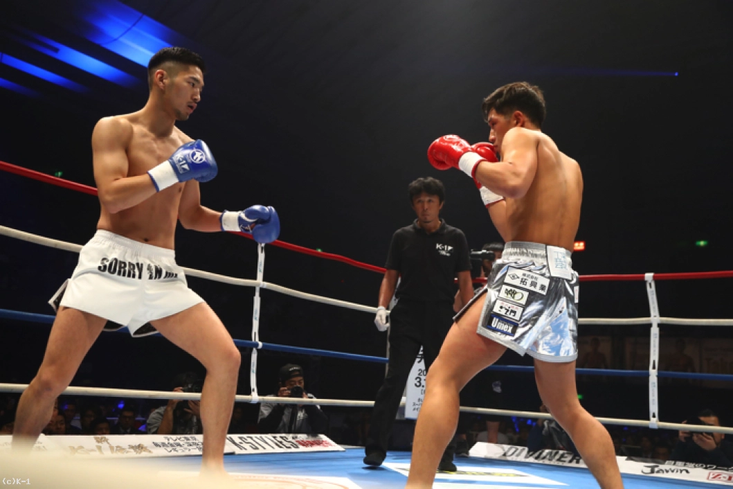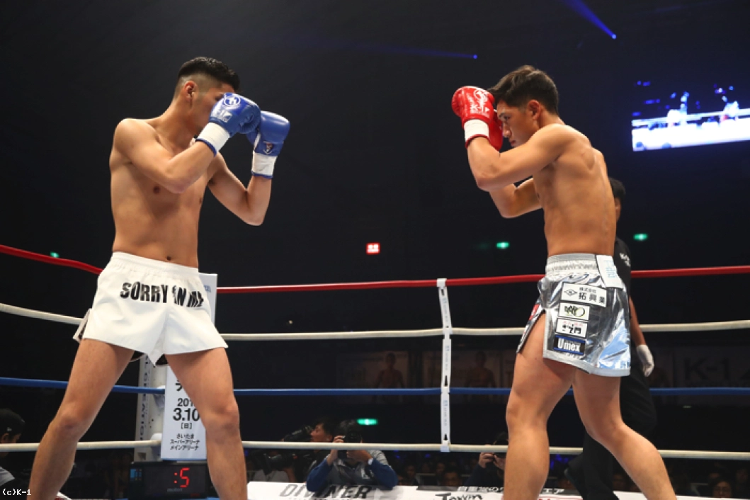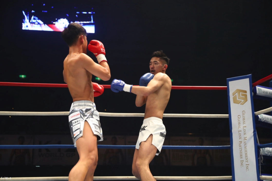 「(一回戦のゴンナパー戦を振り返って?)ゴンナパー選手のことだけを考えて練習してきて。試合前、左ミドルは絶対に来ると思ってたんで、一発目で左フックを合わせようと思って、ドンピシャで当たったんで。それでアセるだろうなと思って、また左が当たったんでよかったと思います。(ゴンナパー選手の印象は?)一瞬すぎてわからないですね。でも、一回戦も準決勝もあんまり覚えてないですね。(準決勝の林戦を振り返って?)弱かったですね、僕が(苦笑)。1Rでいけると思った分、隙が出来たたと思います。攻撃も当たってたんですけど、ディフェンスが欠けてたかなと思います。