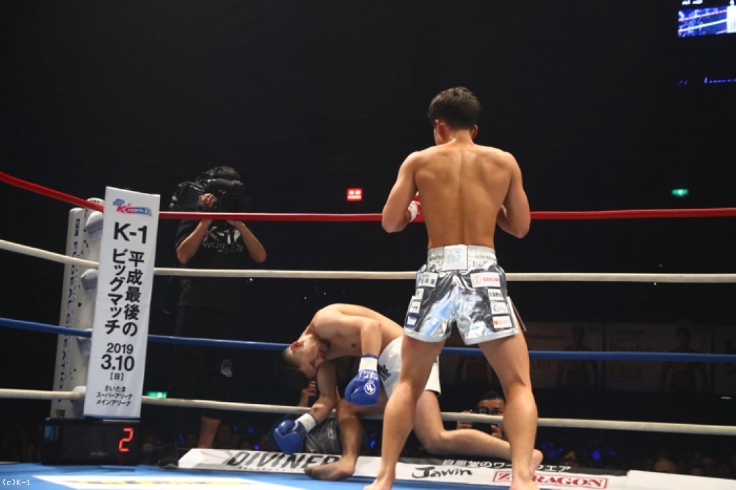 (初めてのトーナメントだったが、メンタルのコントロールは?)。ライト級も外国人相手も初めてだったんですけど、こういうことがあるんやっていうのが経験できて。自分の考えが甘かったと思います。(トーナメントで天国と地獄を味わったと思うが、率直な心境は?)K-1のライト級のベルトをとりたかったので、メッチャ悔しいですね。今後も狙っていきたいと思います。(ファンにメッセージを)今回、初めてワンデイトーナメントで負けちゃったので、次の戦いに向けて学んだことを出せるように。チャンスをものにしたいと思っているので、応援よろしくお願いします」