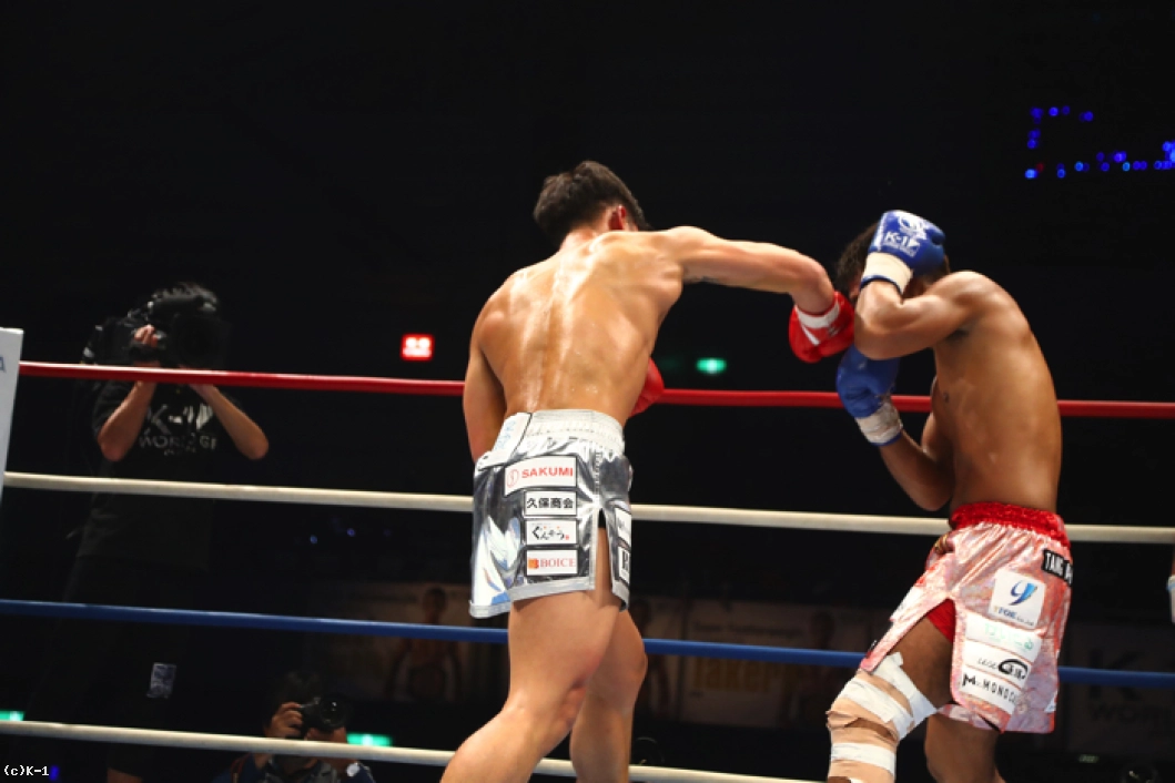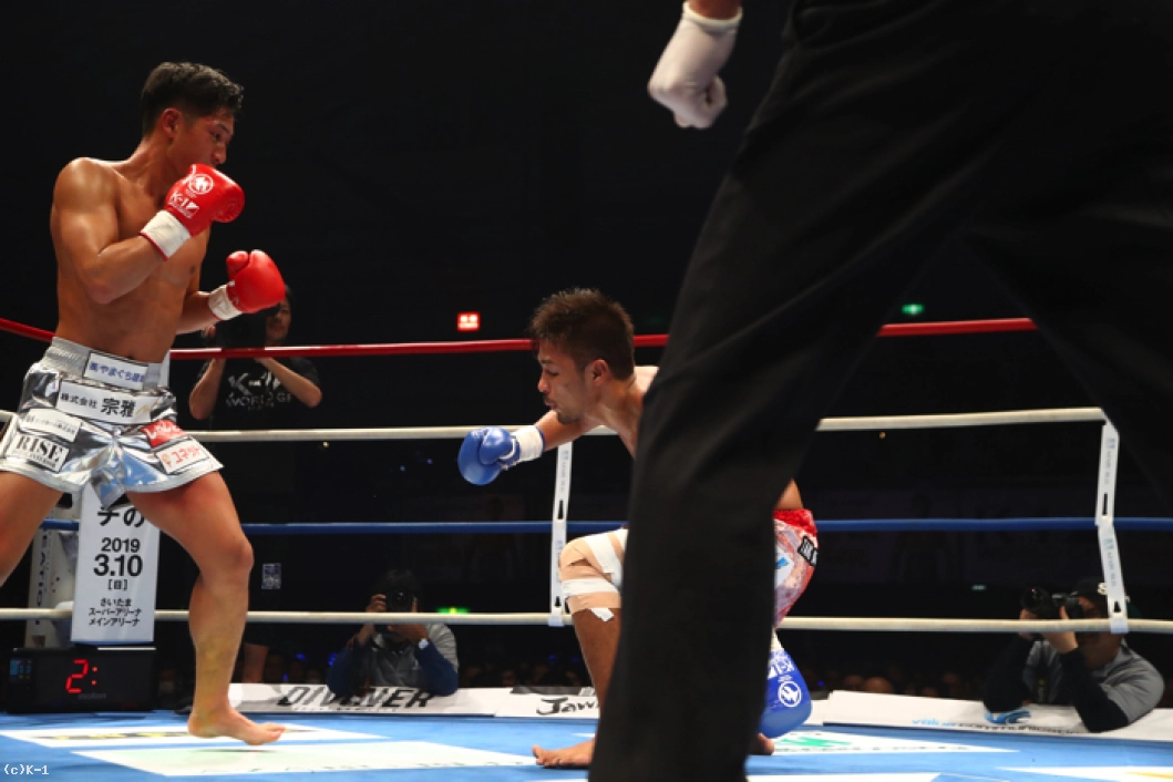 2R、林は圧力を発して前に出るとコーナーに詰めての右ストレート、ボディフックと大沢を攻める。大沢はガードを固め、ロープを背にしてフットワークで逃れるが、そこから左フックを返し、林をフラつかせる。ガードに構わず右ストレート、左フックと強打を打ち込むは林とガードから右アッパー、左フックとパンチを返す大沢。ガードを固めていた大沢だが、林が右クロスを決め大沢をダウンさせる。ここから両者はさらに打ち合いを激化。林は右ストレートでとらえ、大沢を後ずさりさせて2度目のダウンを奪取する。林はコーナーに詰め、これに大沢はハイキックを放つがダウンを奪い返すには至らない。