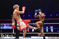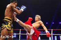 (相手の印象は?)こんなに僕が前に出られないことって今までなかったと思うんで、自分でもビックリしたし。隙がないというか、僕は最初ずっとインローを蹴ってたと思うんですけど、逆に言うとインローしか蹴れなかったんですよ、あの状態で。それぐらいの相手って今までいなかったんで。ミドル一発で『これもらいすぎたら腕折れるな』と思ったし、ホントに、どっちが先に覚悟決めるかっていう試合でしたね、ずっと。